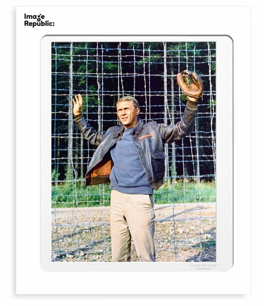 Affiche La Galerie Mcqueen Evasion Au Format 40 X 50 Cm Éditée Par Image Republic. Idéale Pour Égayer Une Pièce, Cette Affiche Dévoile Un Cliché De Steve Mcqueen En Pleine Partie De Baseball.