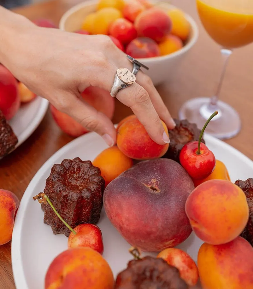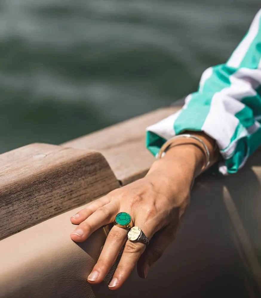 Bague Please Stay De La Marque Tó Garal, Une Bague Chevalière D’Aspect Brut Et Vieilli Qui Présente Un Mélange D’Argent Sterling Et D’Or 18K, Ainsi Qu’Une Gravure « If I Die Please Stay ».