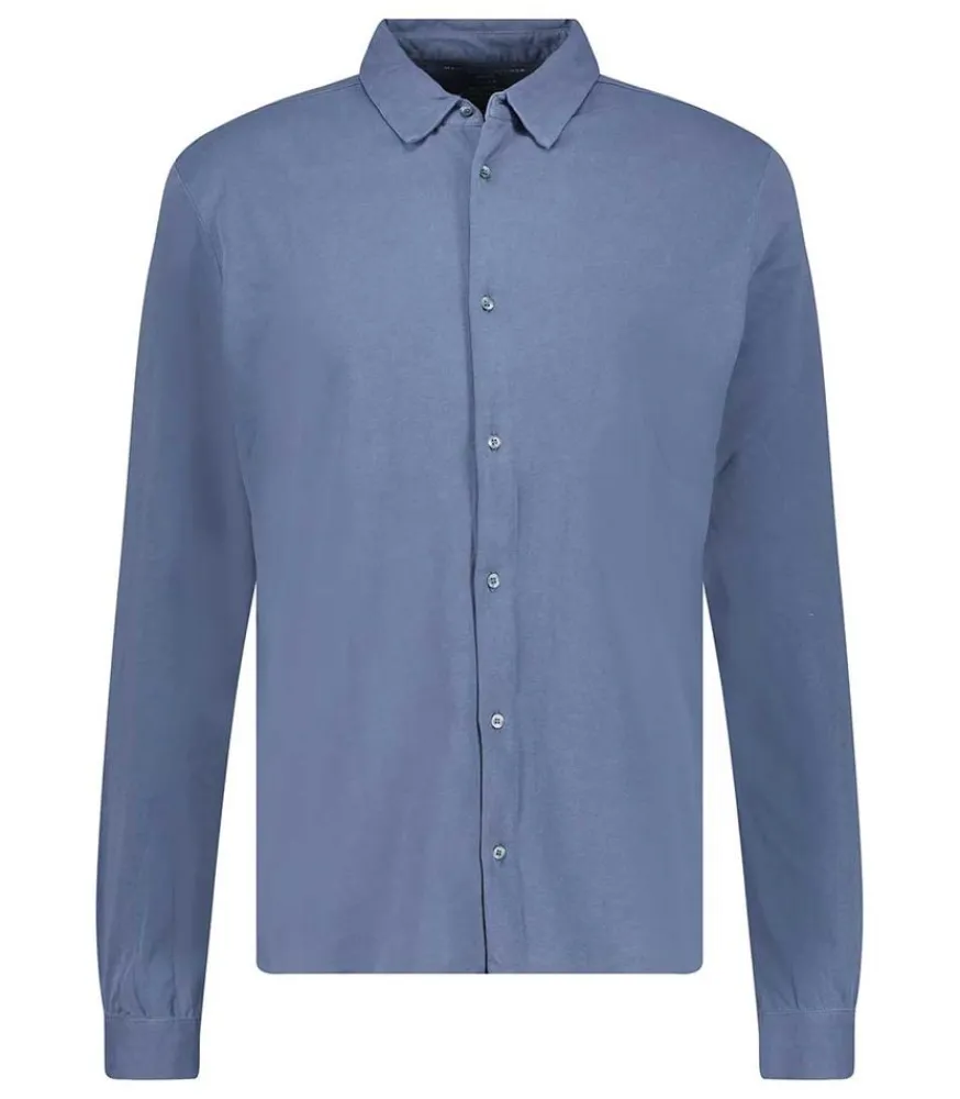 Chemise Homme À Manches Longues Bleu Vintage De La Marque Majestic Filatures, En Coton Souple Et Élasthanne Pour Un Confort Incomparable Et Pour Un Esprit Casual. Teinte Bleue Vintage Masculine Et Élégante. Voir La Taille Du Mannequin