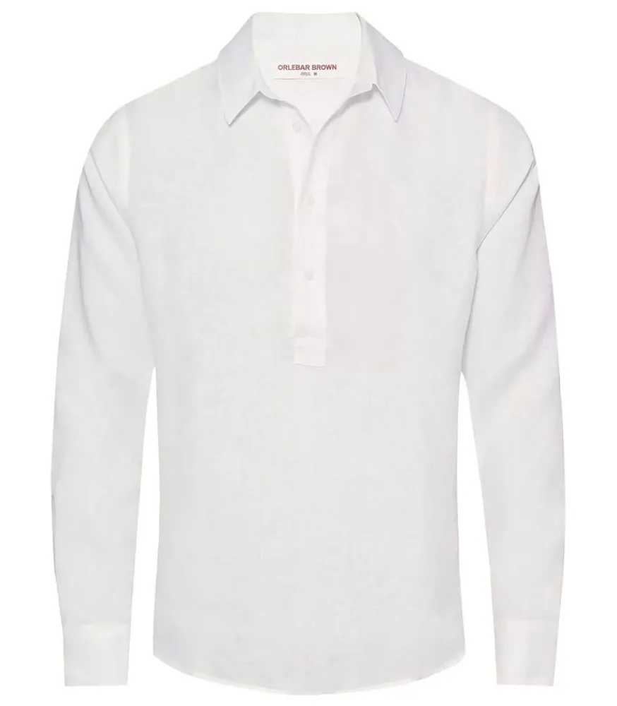 Chemise Pour Homme Percy White Signé Orlebar Brown, Un Modèle À Col Classique À Enfiler. Pratique, Légère Et Polyvalente, Cette Chemise Est Idéale En Été Accompagnée D’Un Pantalon En Lin Et D’Une Paire De Baskets.