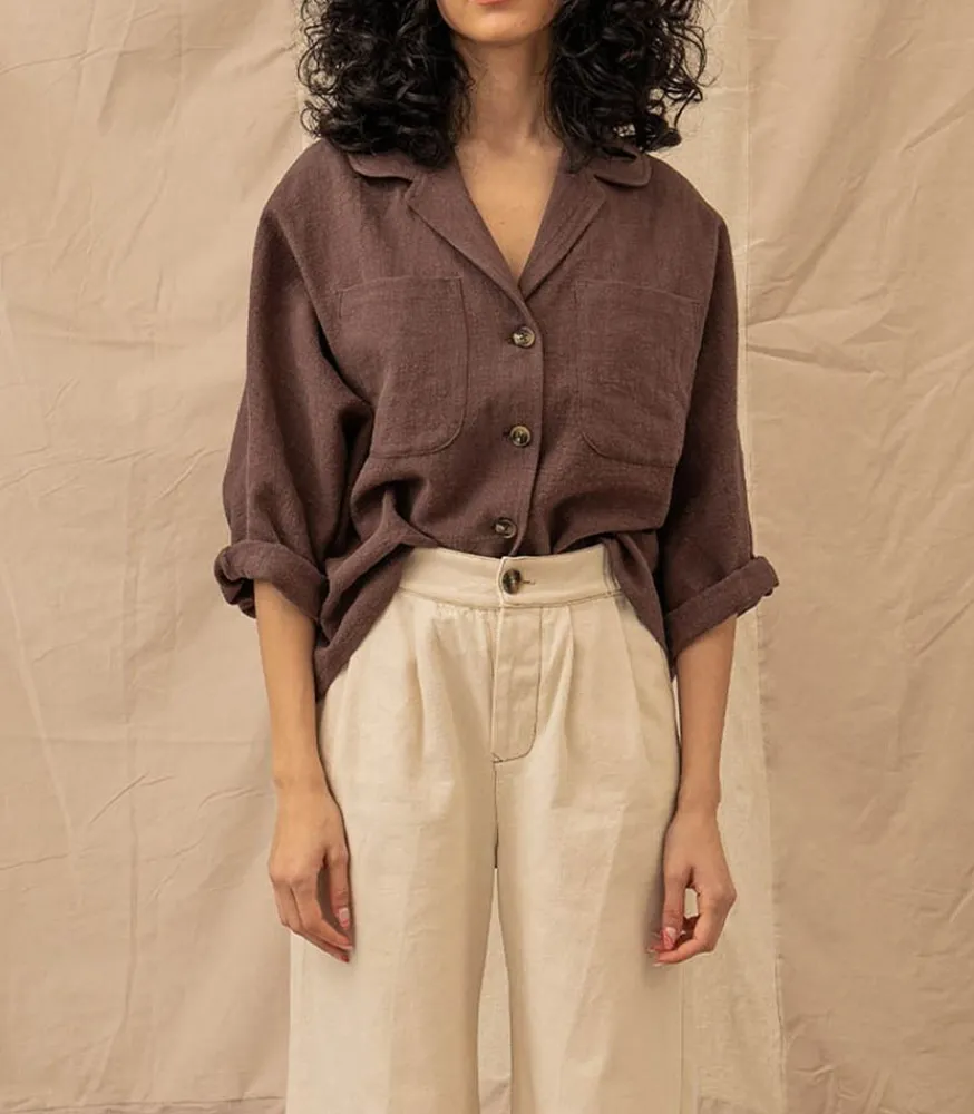 La Chemise Romy Chocolat De La Maque La Treille Maison Ensoleillée Est La Pièce Idéale Pour Le Retour Des Beaux Jours, Véritable Intemporel À Porter En Toutes Occassions.