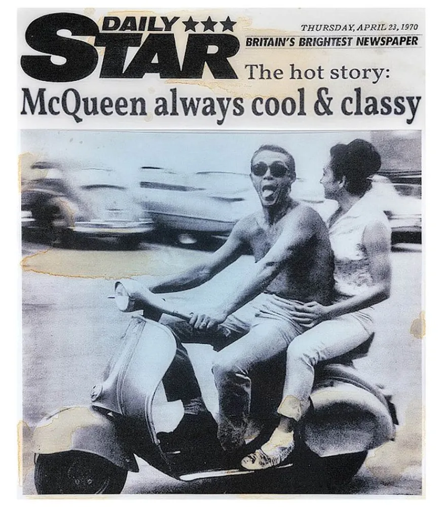 Tableau « Cool & Classy » Jörg Döring, Représentant La Une De Couverture Du Magazine Britannique Daily Star En Date Du 23 Avril 1970. Steve Mcqueen Enfourche Torse Nu Son Scooter Et Tire La Langue Au Photographe. Le Cliché, Accompagné Du Titre « Mcqueen Always Cool & Classy » Fait Référence À La Popularité De L’Acteur À Cette Époque.