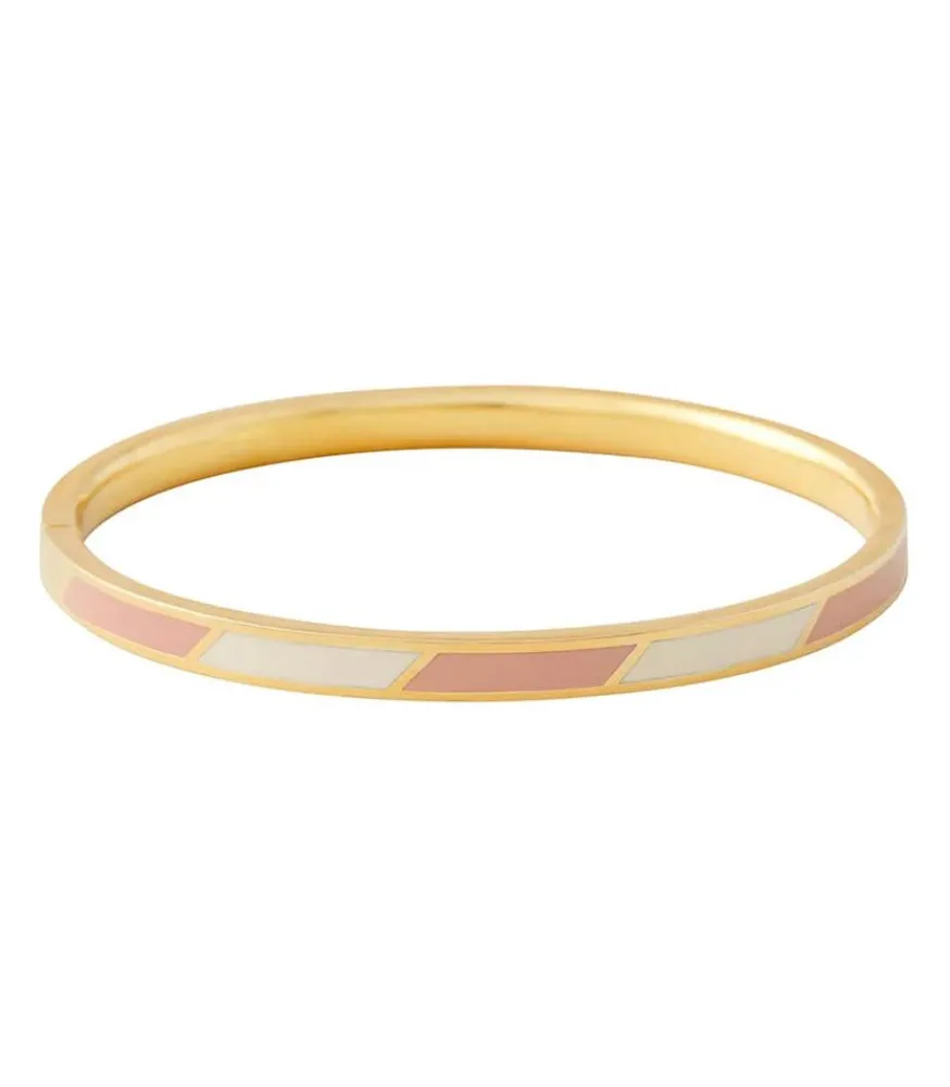 Bracelet Stripes Beige White De La Marque Design Letters, Un Jonc Fin Féminin Et Élégant, Conçu En Acier Inoxydable Avec Émail De Coloris Beige Et Blanc. On Le Porte En Accumulation Avec D’Autres Joncs De La Marque.