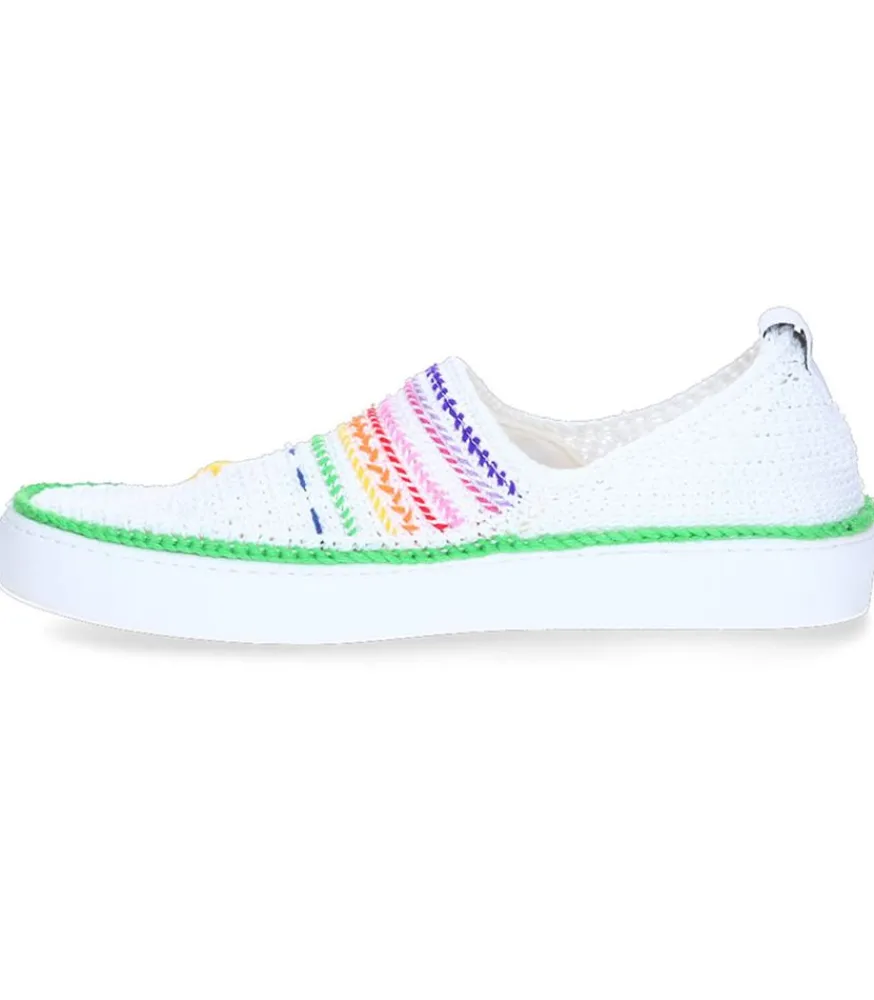 Chaussures Malibu Love De La Marque Amrose, Une Paire De Chaussures Crochetée À La Main Par Des Femmes Du Monde Entier. Ce Modèle Dévoile Une Broderie Muticolore Qui Raconte Une Histoire À Travers Ses Couleurs Et Illustrations.