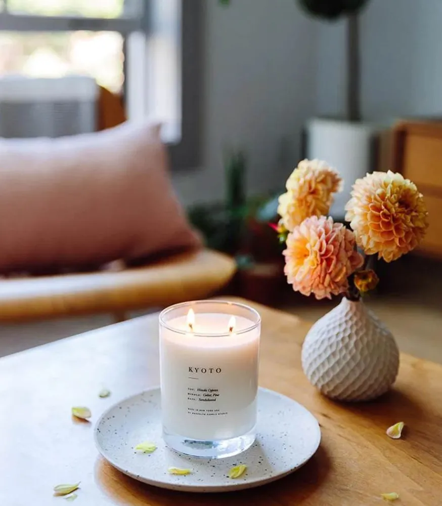 Bougie Végétale Parfumée Signée Brooklyn Candle Studio, Issue De La Collection Escapist, Des Bougies Inspirées De Voyages. Parfum Kyoto Inspiré Des Rues Arborées Et L’Architecture En Bois De Kyoto. Un Mélange Méditatif De Cyprès Hinoki, De Cèdre, De Bois De Santal, De Vétiver Et De Pin. L’Éthos De Kyoto Est Celui Du Bois, De La Pluie Et De L’Art.
