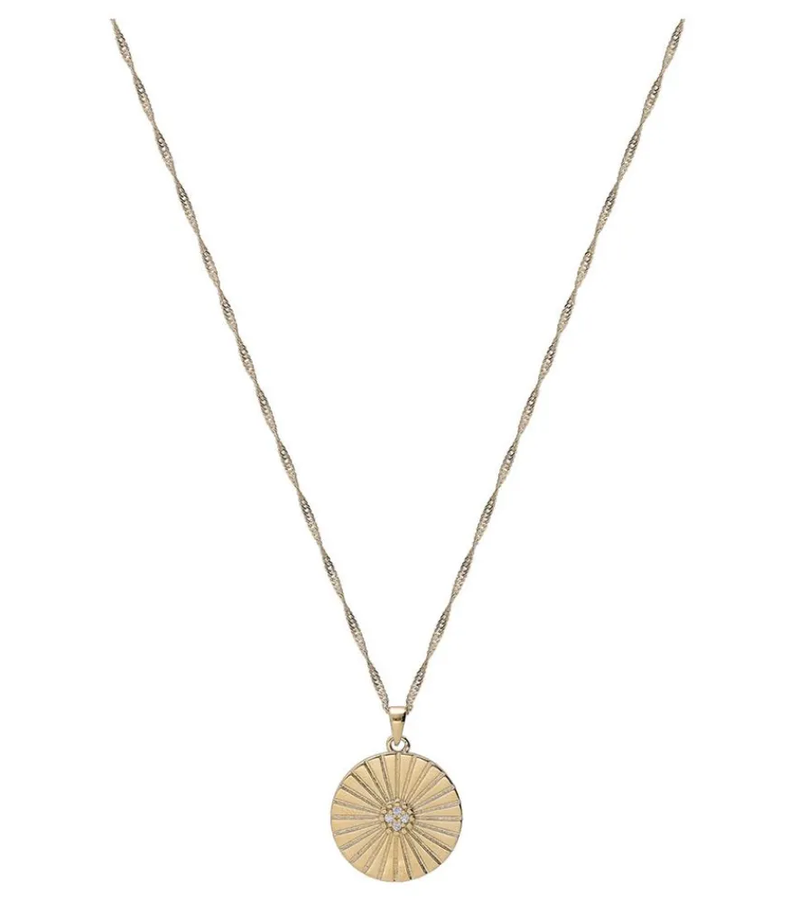 Le Pendentif Solaire, Délicatement Serti, Capte La Lumière De Manière Éblouissante, Ajoutant Une Lueur Subtile À Votre Décolleté. Fabriqué En Plaqué Or 3 Microns Sur Une Base De Laiton, Ce Collier Allie La Durabilité Et La Brillance Du Métal Précieux À La Beauté Intemporelle Du Design Vintage.