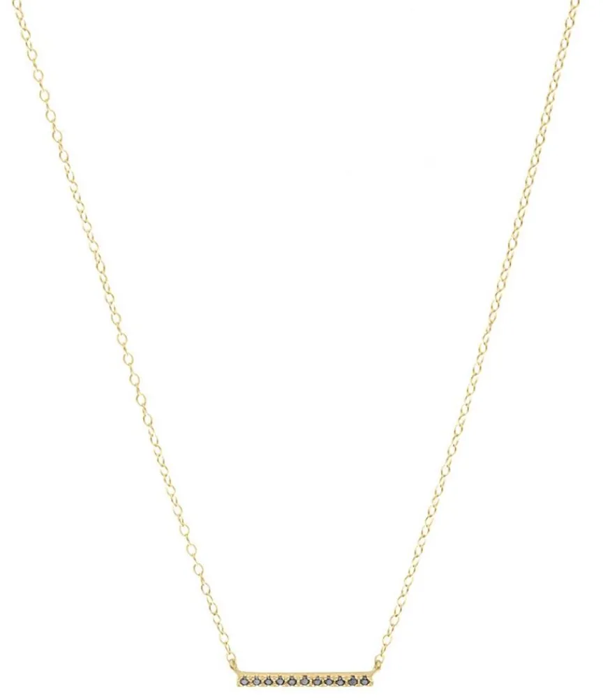 Collier Mini Barre Diamants Noirs And… Paris, En Or Jaune 18 Carats Orné D’Une Petite Barre Pavée De Diamants Noirs. Une Pièce Raffinée Qui Se Porte Facilement Au Quotidien.