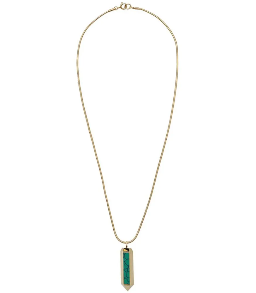 Collier To Dance Green Par Isabel Marant, Un Élégant Collier Doté D’Une Chaîne Dorée Et D’Un Pendentif Orné D’Une Plaquette En Pierre Et Résine Mélangées. Il Viendra Sublimer Le Décolleté En Apportant Une Légère Touche Colorée.