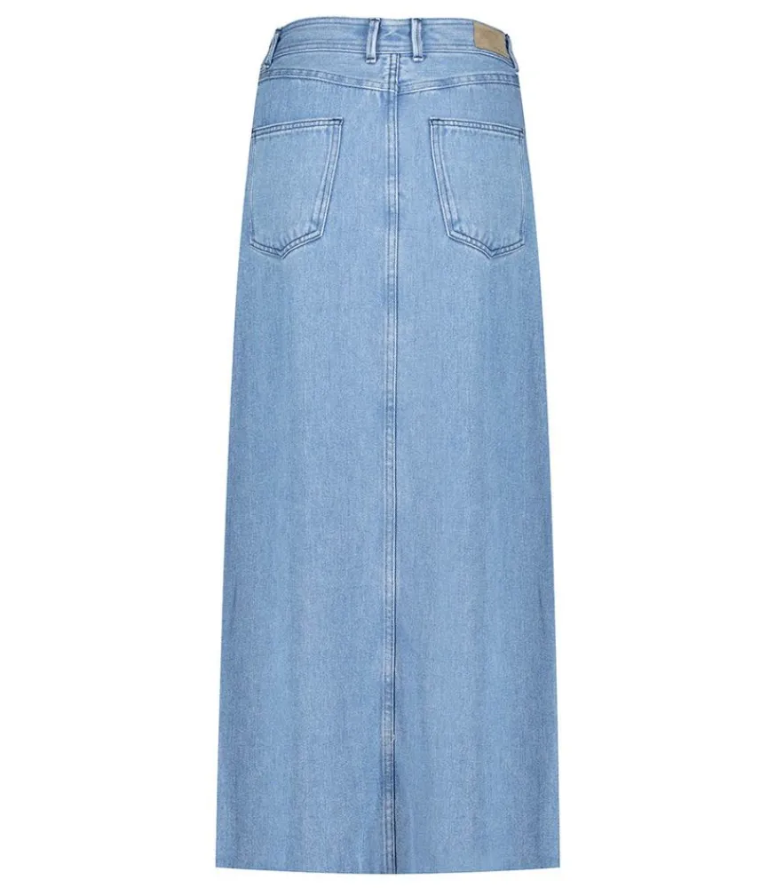 Jupe En Jean Goya De La Marque Red Legend, Confectionnée Dans Un Denim De Lyocell Fluide Et Élégant. Avec Sa Longueur Aux Chevilles, Elle Offre Une Silhouette Moderne Et Décontractée, Idéale Avec Des Boots Ou Des Baskets. Large Fente Ouverte Sur Le Devant Et Poches Plaquées Devant Et Au Dos. Teinte Bleue Délavée Dans Un Esprit Vintage.