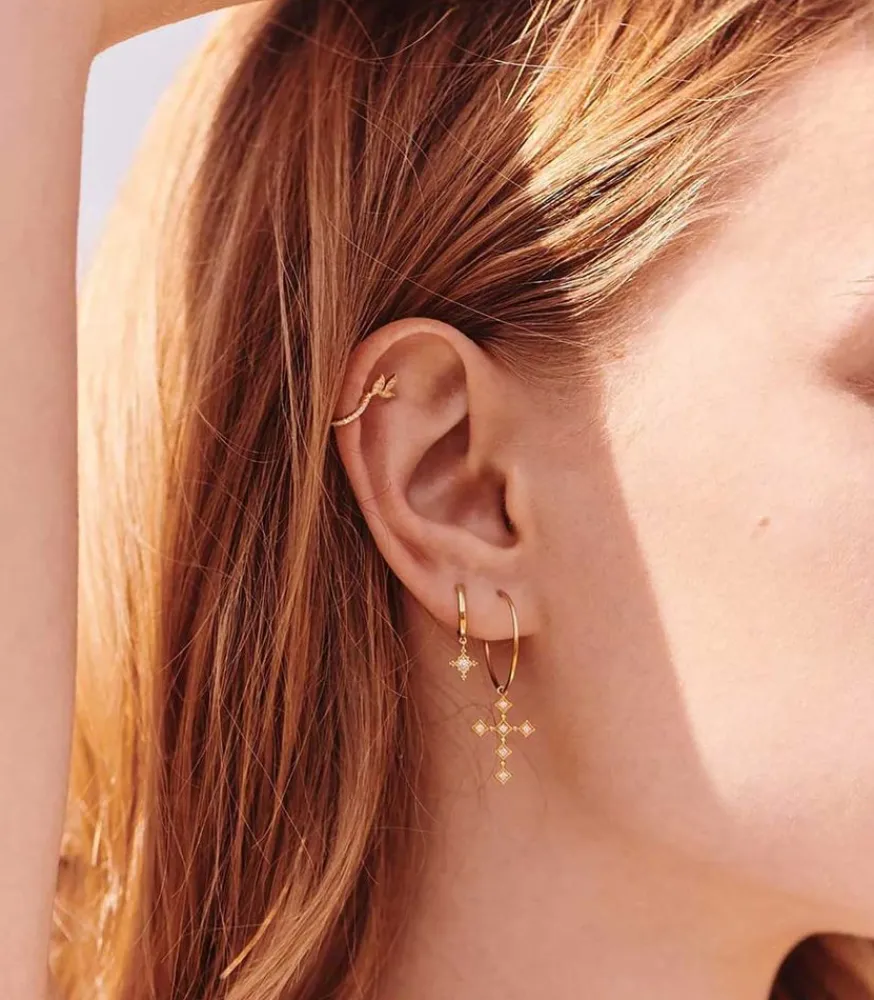 Mini Créole Stone Paris Modèle Into The Wild En Or Jaune Et Diamants. Un Joli Bijou Précieux Et Délicat Qui S’Agrémente D’Un Petit Motif Végétal Au Niveau De La Puce Ainsi Que D’Une Mini Créole Entièrement Pavée De Petits Diamants Blancs.