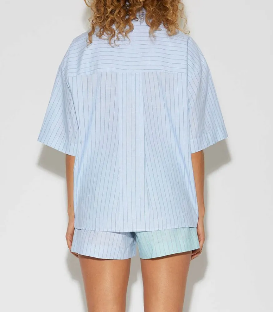 Chemise Bliss Dylan Multicolore De La Marque Roseanna. La Chemise Bliss, Fusionne L’Univers Masculin Avec Une Touche Estivale. Confectionnée En Patchwork De Popeline De Coton Et De Lin À Fines Rayures, Son Coloris Multicolore Apporte Une Dimension Vive Et Dynamique. Légère Et Idéale Pour La Saison Estivale, Cette Chemise Incarne L’Élégance Décontractée.
