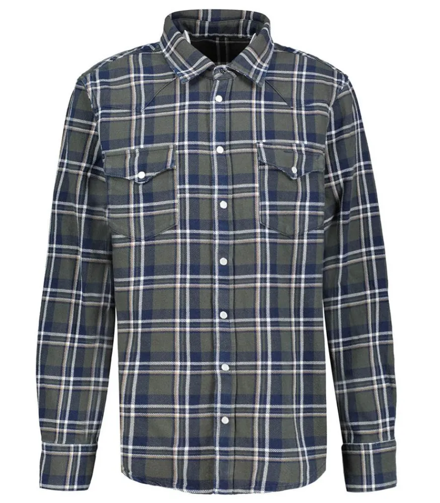 Chemise Pour Homme À Manches Longues À Carreaux Khaki Vert De La Marque Nine In The Morning. Une Pièce Dans Un Esprit Campagne Chic Avec Son Impression À Carreaux Et Ses Teintes Automnales. Matière Douce Et Agréable À Porter.