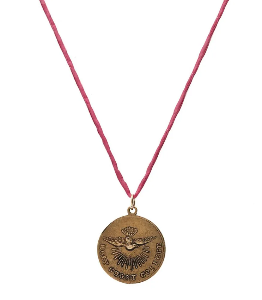 Collier Grand Spirit De La Marque Catherine Michiels, Un Médaillon Gravé De L’Inscription « Holy Ghosty College » Sur Une Face Et « Prize For Hope » De L’Autre.