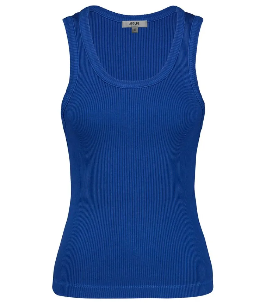 Débardeur Poppy Tank Coloris Tarrot De La Marque Agolde, Un Modèle Intemporel Au Coloris Bleu Foncé. On L’Imagine Avec Un Short En Jean Et Une Paire De Baskets.