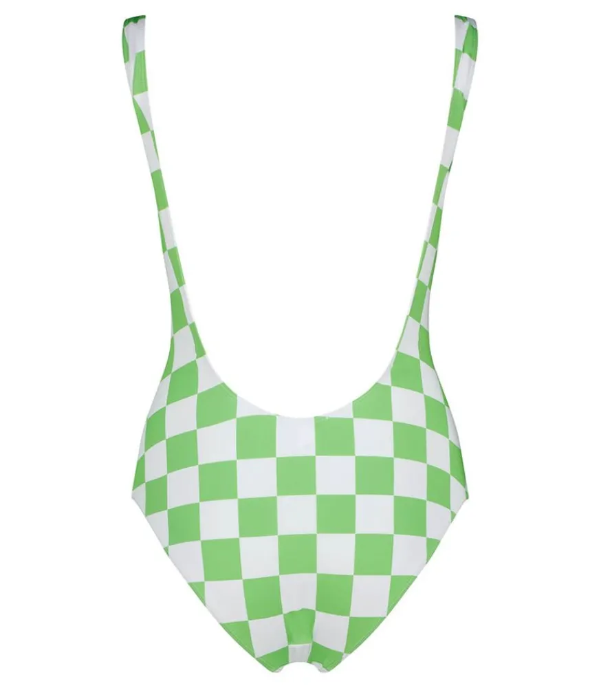 Maillot De Bain Une Pièce Issue De La Toute Nouvelle Collab Roseanna X Barbie ! Il Adopte La Forme Classique Et Iconique Pamela Des Maillots Roseanna : Une Forme Qui Épouse Le Corps Et Qui Offre Un Joli Dos Plongeant. L’Encolure Ronde Permet Une Belle Mise En Valeur De La Poitrine. Impression Larges Carreaux Blancs Et Verts, Et Logo Noir « Barbie » Devant.