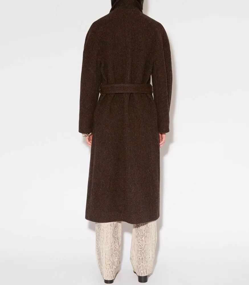 Manteau Lennon Max Choco De La Marque Roseanna. De Par Sa Longueur Et Sa Composition En Tweed De Laine Vierge Chiné À Chevrons, Ce Manteau Vous Tiendra Au Chaud Tout L’Hiver. Un Modèle Inspiré De L’Icône Musicale : John Lennon.