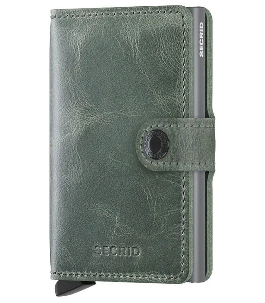 Porte-Carte Miniwallet Vintage Sage De La Marque Secrid. Malgré Sa Petite Taille, Le Miniwallet Offre Un Espace De Rangement Étonnamment Spacieux. Son Extérieur Peut Accueillir Des Billets De Banque, Des Reçus Et Des Cartes, Tandis Que Son Cardprotector En Aluminium Permet D’Extraire Les Cartes D’Un Simple Mouvement Tout En Les Protégeant.