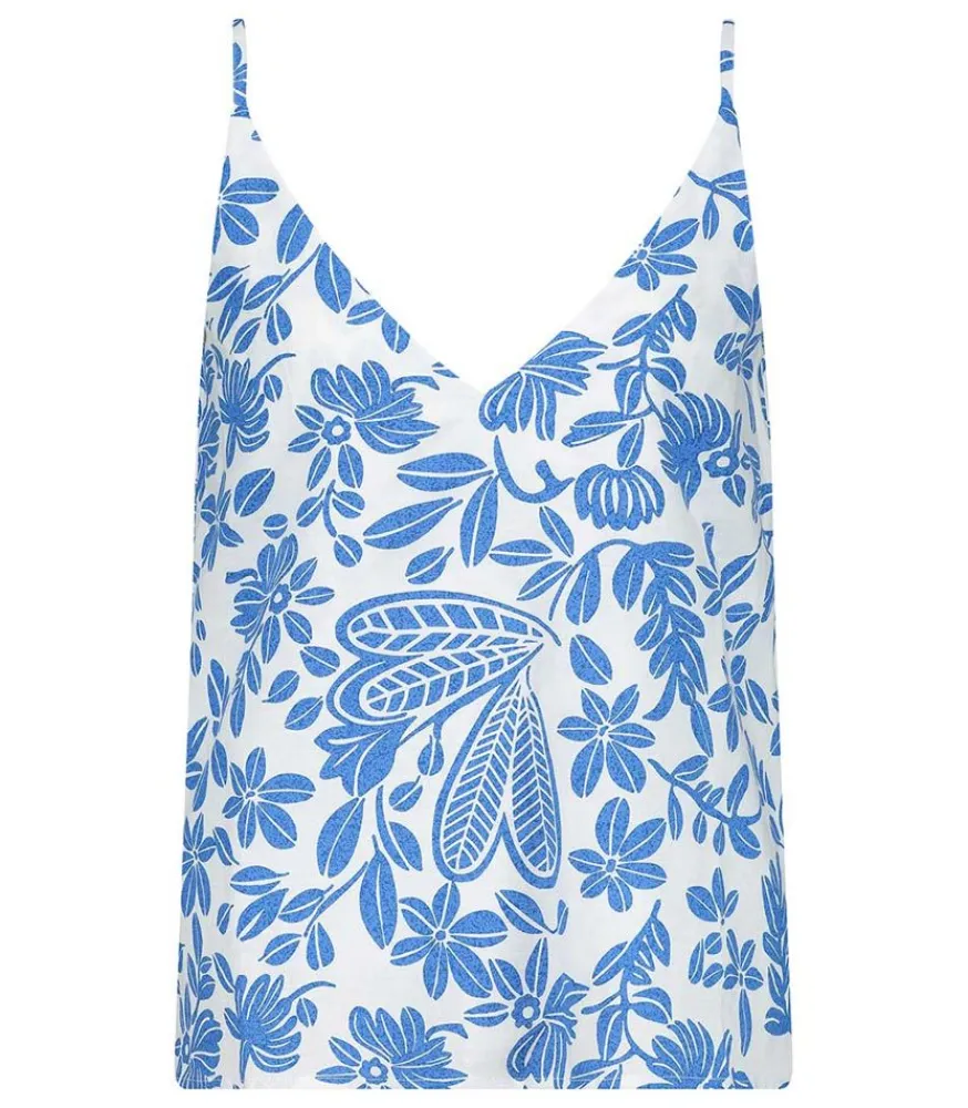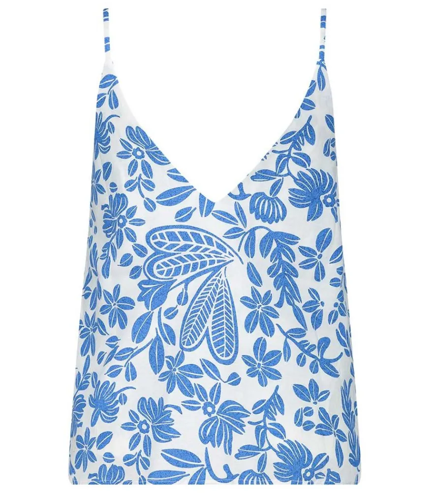 L’Été, On Aime Voir Se Remplir Notre Vestiaire De Petits Tops Colorés Et Très Légers, Faciles À Adopter Au Quotidien. Découvrez Ce Top À Bretelles Amélia Fokis Modetrotter, En Coton Et Lin Blanc Avec Imprimé Floral Bleu. Il Présente Des Bretelles Fines, Une Encolure En V Devant Et Dans Le Dos. Parfait Avec Un Simple Short En Jean.