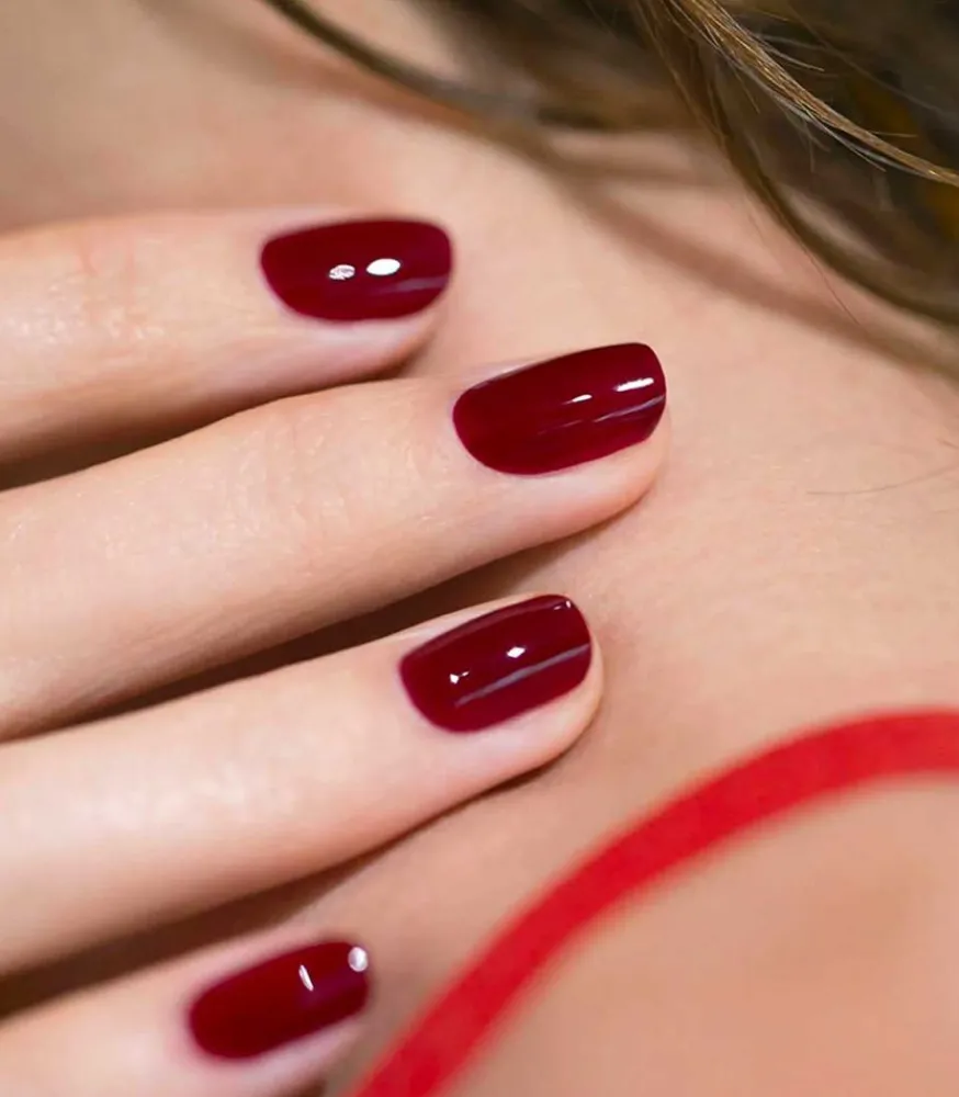Vernis Semi-Permanent Green Flash De La Marque Manucurist Coloris Dark Pansy, Un Intense Couge Cerise Noire.