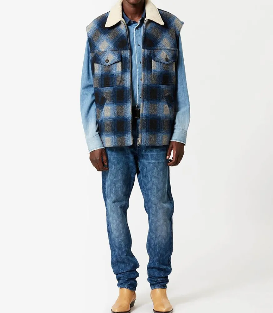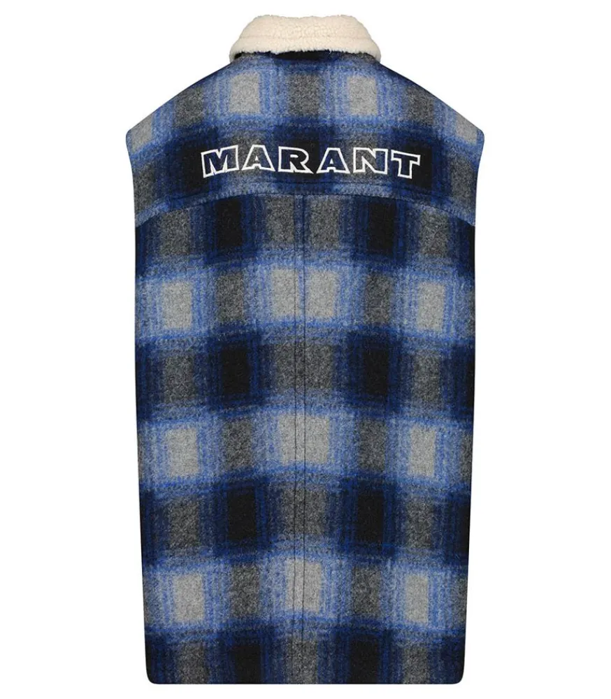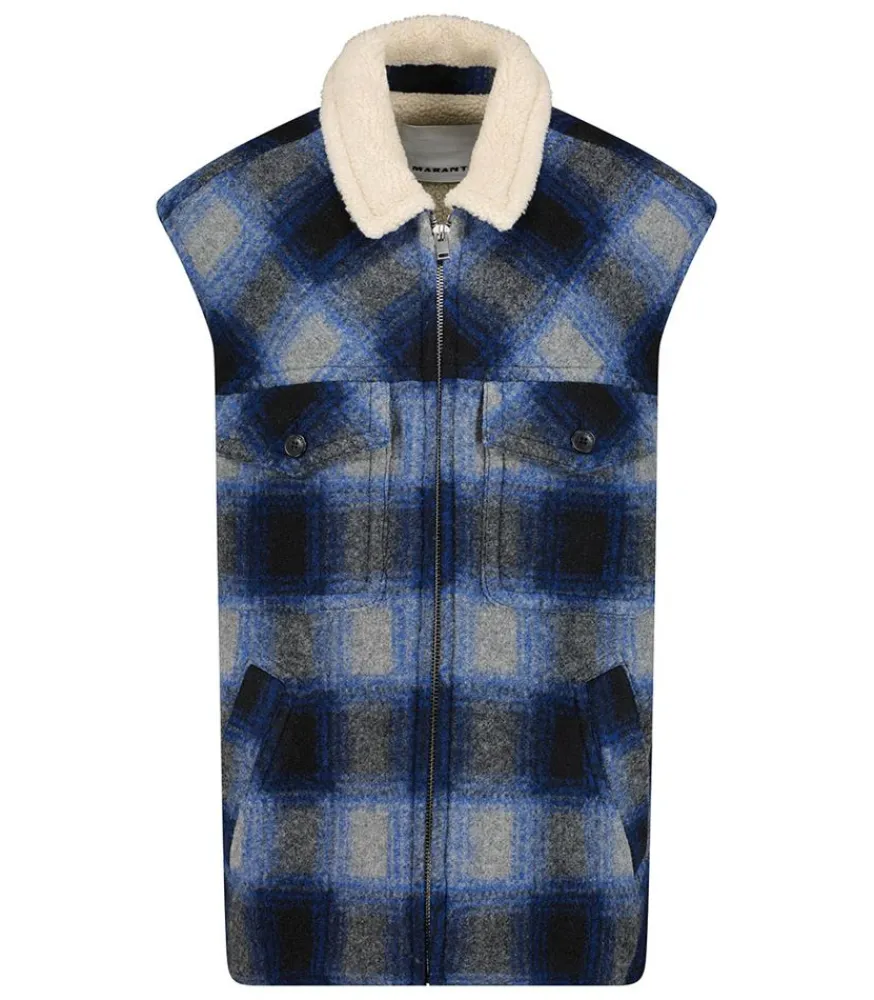 Veste Kiran Navy En Laine Mélangée De La Marque Isabel Marant. Sans Manches, Elles Constitue La Pièce Parfaite Pour Agrémenter Vos Tenues Tout En Tenant Chaud. Son Design Présente Un Motif À Carreaux Dans Des Teintes Bleues Et Dans Un Esprit Bucheron.