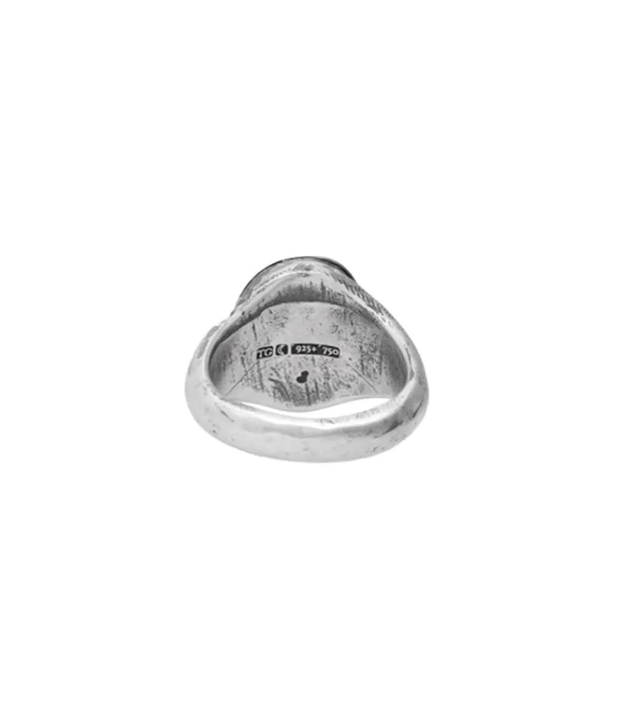 Bague Please Stay Red Gold De La Marque Tó Garal, Une Chevalière À L’Aspect Brut Et Authentique Conçue En Argent Sterling Et Or Rouge 18K Qui Dévoile Une Gravure Comme Manuscrite « If I Die Please Stay ».