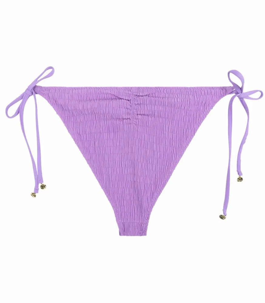 Craquez Pour Le Bas De Bikini Vanity Lilac, Un Bas De Style Tanga Dans Une Teinte Lilas Rafraîchissante Qui Allie Élégance Et Confort. Confectionné Dans Un Tissu Doux Et Extensible, Ce Bas De Bikini Offre Un Ajustement Parfait À Chaque Silhouette. Son Tissu Présente Une Texture Ruchée Avec Des Détails En Surpiqûre, Ajoutant Une Touche De Sophistication À Votre Tenue De Plage.