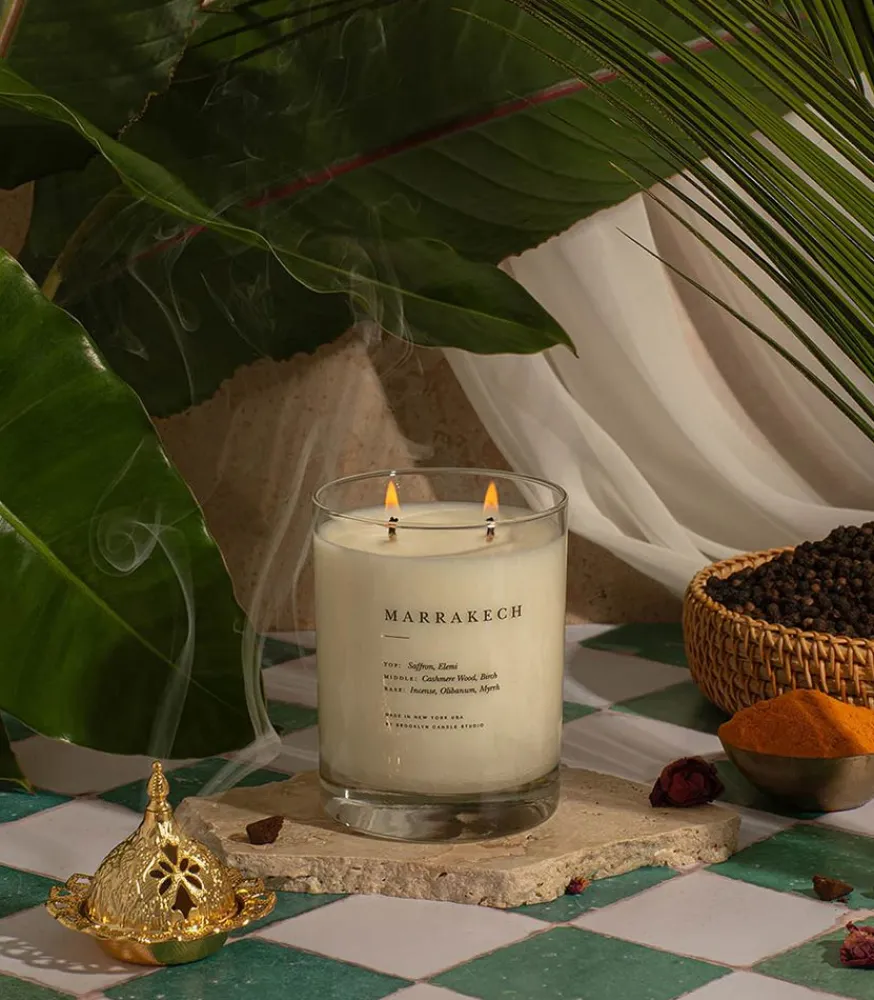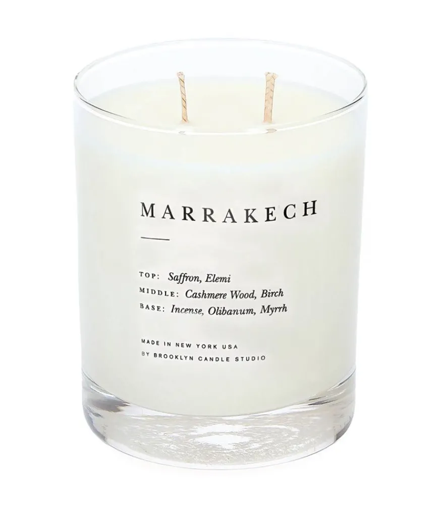 Bougie Végétale Parfumée Signée Brooklyn Candle, Issue De La Collection Escapist, Des Bougies Inspirées De Voyages. Cette Bougie Nous Transporte Tout Droit Dans Les Ruelles De Marrakech, Où Des Notes De Cuirs Et De Miel S’Échappent De La Place Des Epices Et Se Mêlent À Un Doux Fond D’Encens De Myrrhe Et De Bois De Santal.