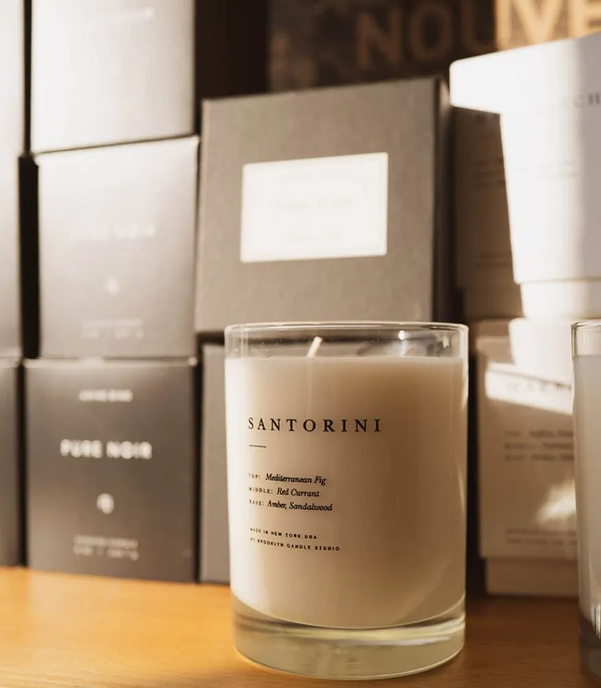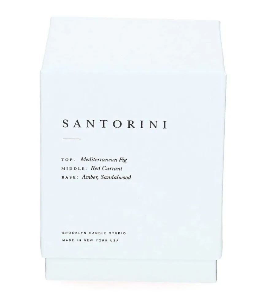 Bougie Végétale Parfumée Signée Brooklyn Candle Studio, Issue De La Collection Escapist, Des Bougies Inspirées De Voyages. Parfum Santorini Inspiré De La Grèce, Aux Arômes Terreux Et Fruités De Figuier Et Groseilles Indigènes Luxuriantes, Comme Ceux Que L’On Retrouve Sur Cette Île. Des Notes Boisées De Bois De Santal Et D’Ambre Forment Une Base Riche Et Chaleureuse Qui Vous Feront Rêver Des Îles Grecques.