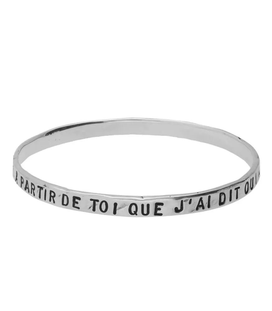 Issu De La Collection Des Intemporels, Le Bracelet Bracelet Paul Éluard Par Serge Thoraval Est Fabriqué À La Main En France En Argent Premier Titre. Ce Modèle Est Gravé De La Citation « C’Est À Partir De Toi Que J’Ai Dit Oui Au Monde » De Paul Éuard.