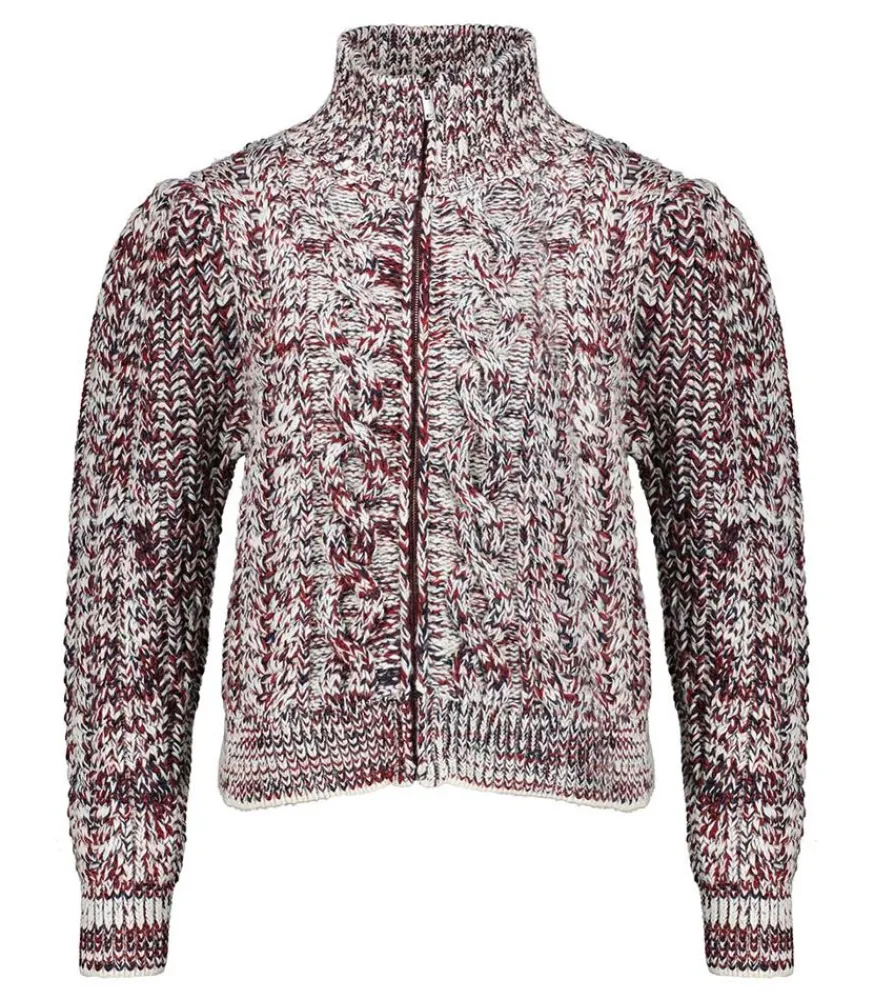 Cardigan Romane Burgundy De La Marque Marant Étoile. Idéal Pour La Saison Hivernale. On L’Imagine Avec Une Tenue Simple : Jean Coupe Droit Et Haut Blanc.