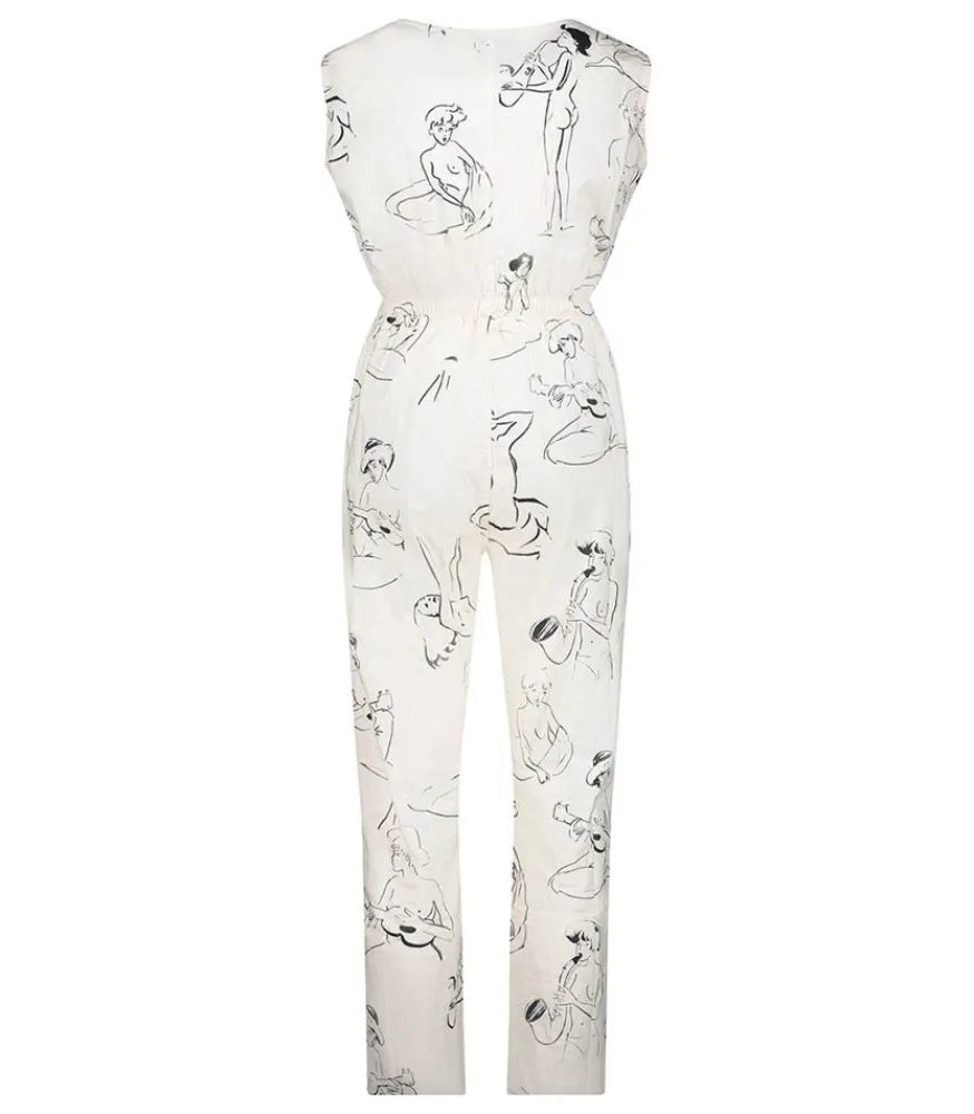 Combinaison Esquisse Sans Manches De La Marque G.Kero. On Aime Sa Coupe Droite Resserrée À La Taille Qui Souligne La Silhouette Et L’Élance. Des Petits Boutons Métallisés À L’Avant Viennent Sophistiquer Le Tout Tandis Que Deux Poches Plaquées Au Niveau Du Bassin Apporte Un Esprit Plus Confortable. Impression Esquisse En Noir Et Blanc Façon Dessin Au Fusain.