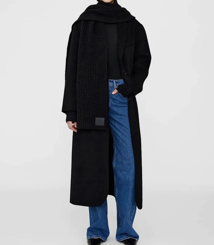 Echarpe Hannah Noir. Idéale Pour L’Automne / Hiver, Cette Écharpe Accessoirisera Au Mieux Votre Tenue. L’Accessoire Indispensable Pour Vous Tenir Au Chaud Toute La Saison. Patch Noir Signé Anine Bing.