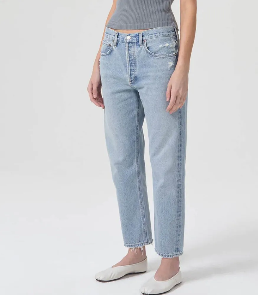 Jean Parker Signé Agolde, Présenté Dans Un Denim Clair Légèrement Délavé Swapmeet. Idéal Pour Une Allure À La Fois Rétro Et Décontractée, Ce Modèle Dévoile Une Jambe Droite Et Une Taille Basse. A Associer À Une Paire De Sneakers Et À Un Sweat-Shirt.