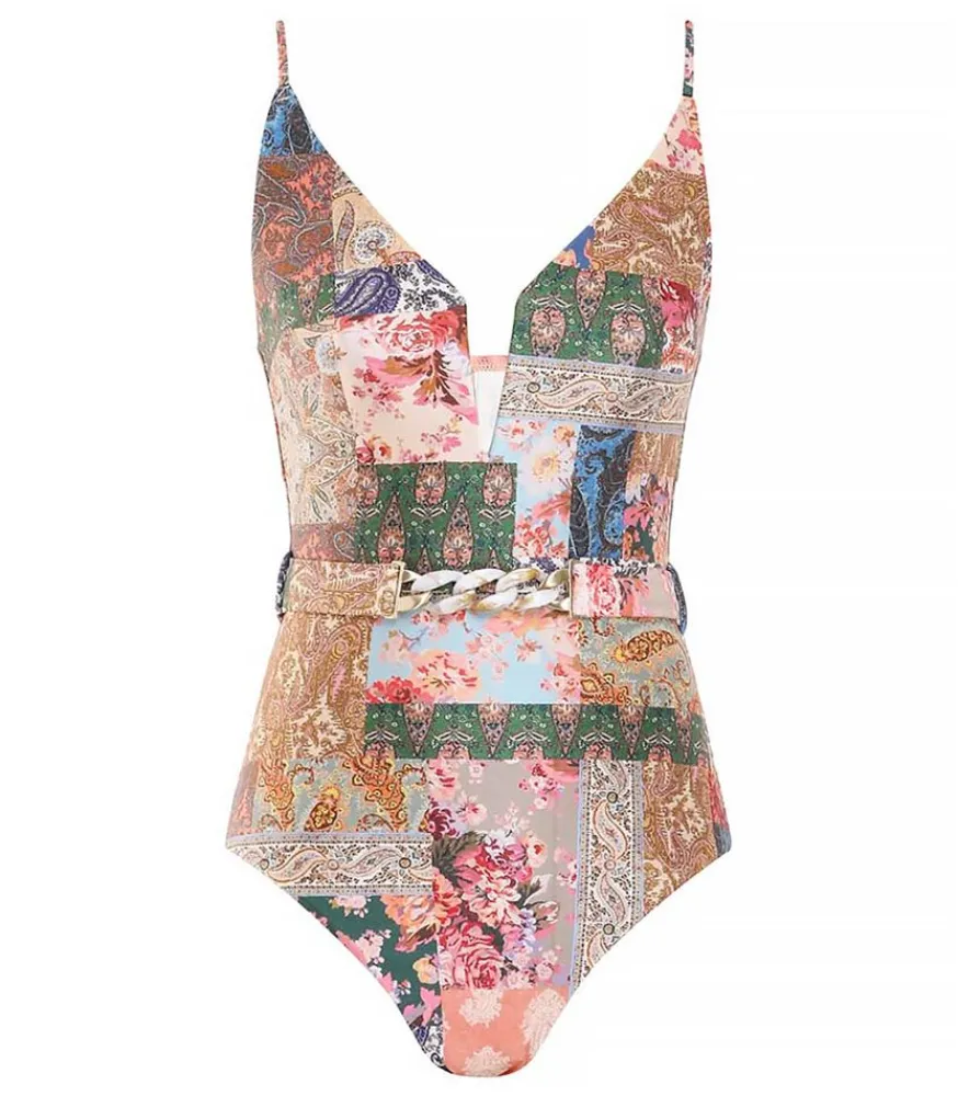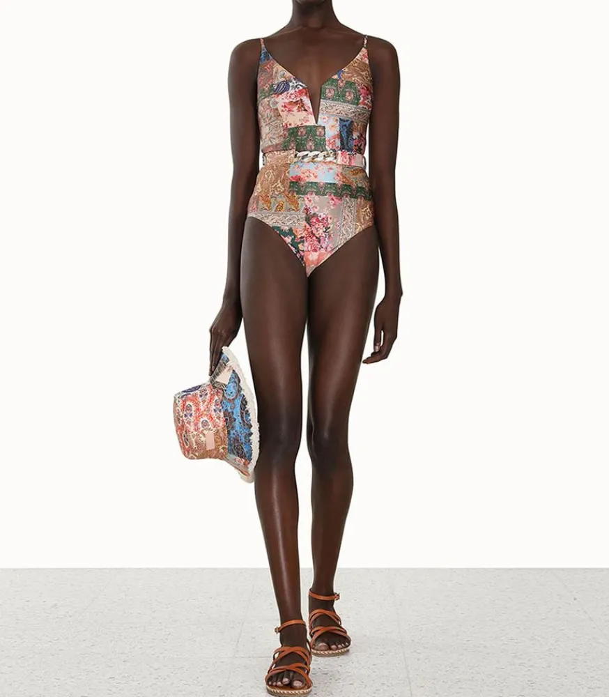 Maillot De Bain Une Pièce Devi Plunge V Wire De La Marque Zimmermann. Issu De La Collection Summer Swim 2023, Ce Modèle Se Distingue Par Son Imprimé Paisley Et Sa Ceinture.
