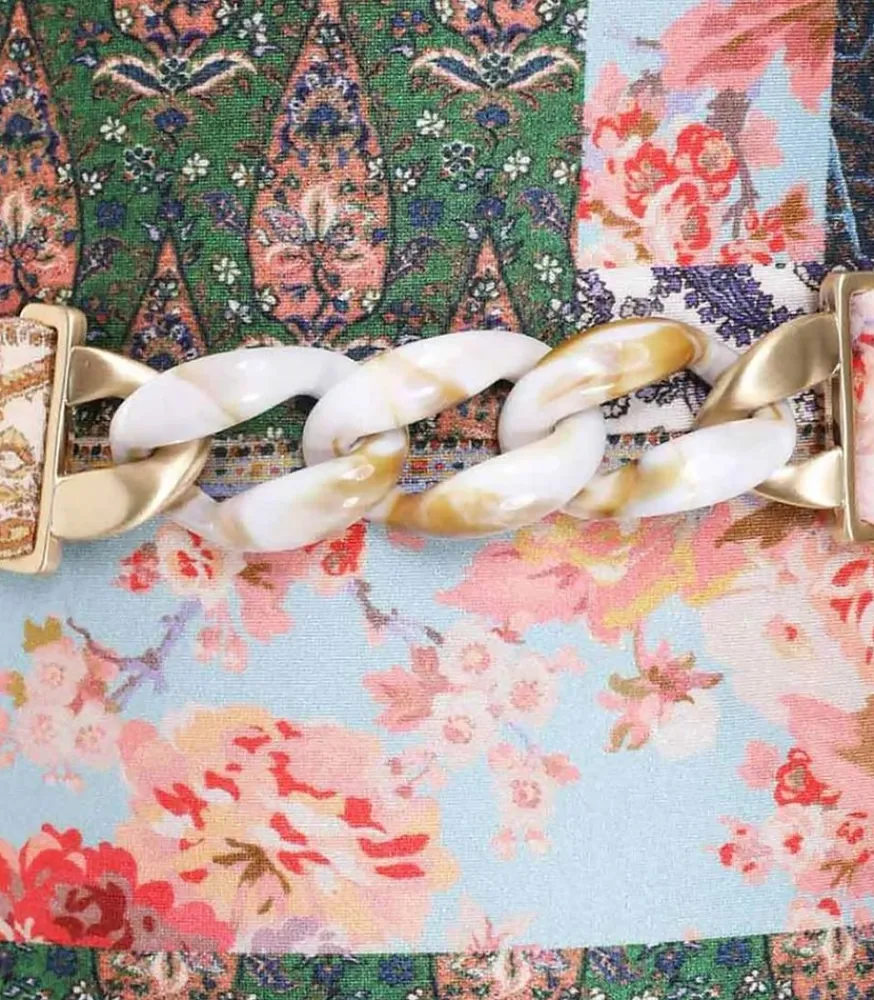 - Ceinture Imprimée Avec Chaîne Et Clip Arrière