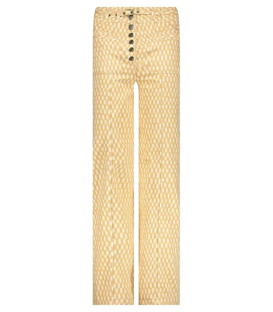 La Version Cargo Utilitaire D’Ulla Johnson Est Un Pantalon À La Toile Rigide Orné D’Une Jolie Impression Petits Carreaux Fins. Il Aborde Une Teinte Délavée À Base De Crème Et De Orange Pastel. Avec Sa Taille Haute Et Sa Jambe Évasée Et Large, Il Créé Une Silhouette Androgyne Comme Les On Les Aime.