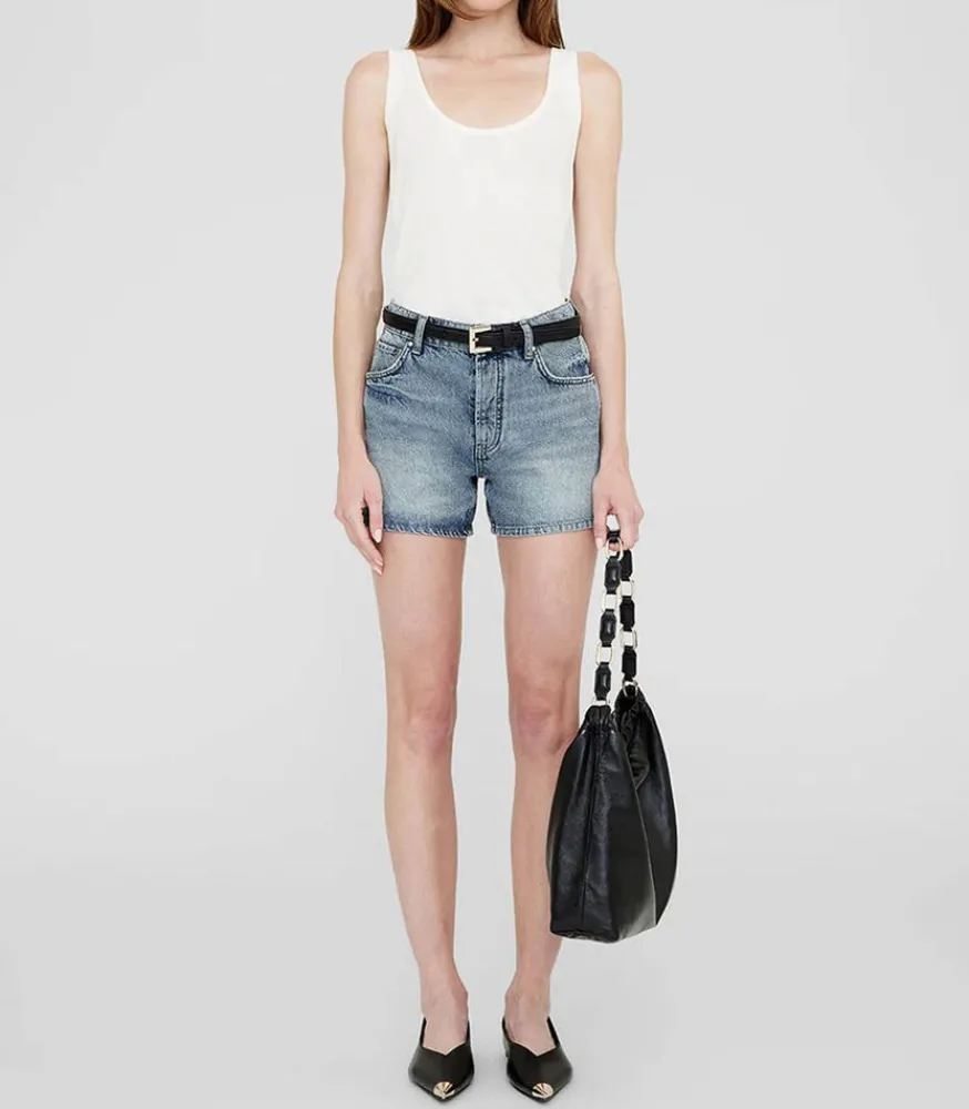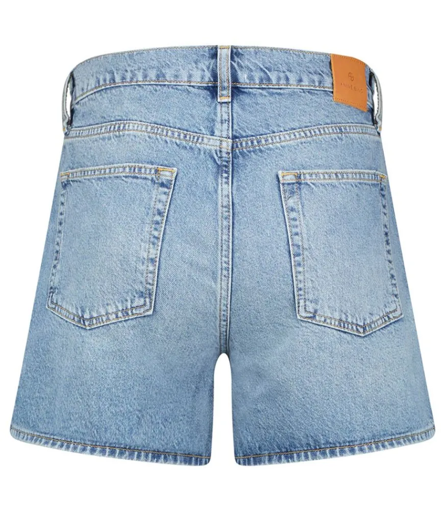 Short Dalton Pacific Blue Signé Anine Bing, En Denim Bleu Délavé Dans Un Esprit Vintage. Coupe Regular Et Taille Assez Haute.