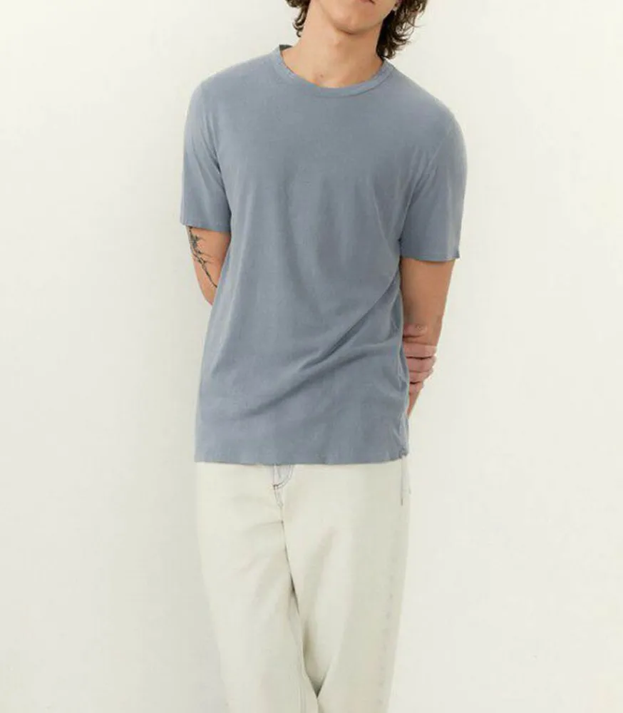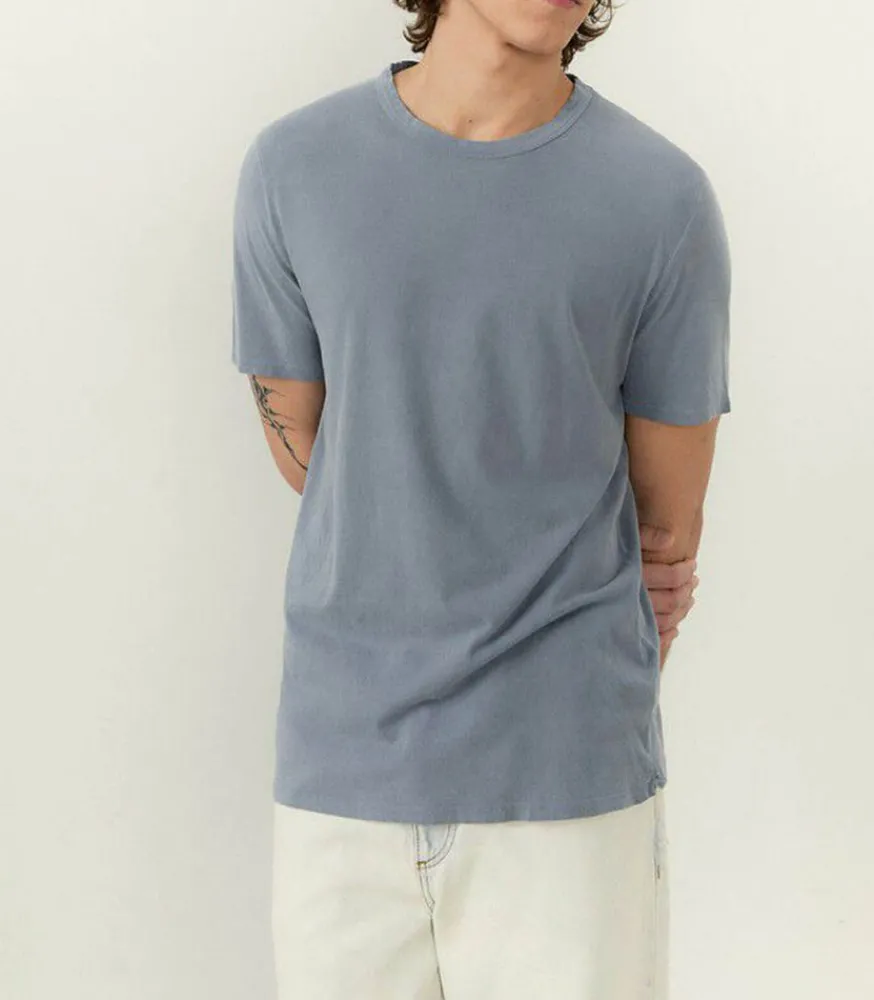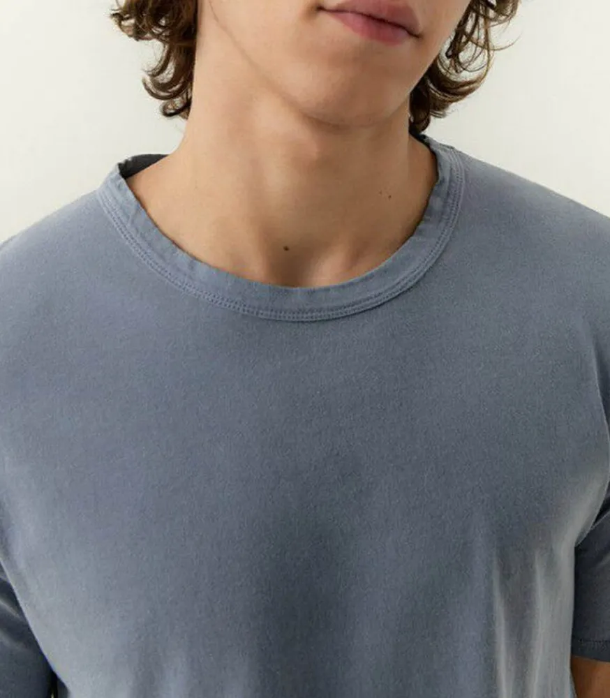 Tee-Shirt À Manches Courtes Homme Devon Gris Vintage De La Marque American Vintage, À La Coupe Ample Et Large, Très Masculine.
