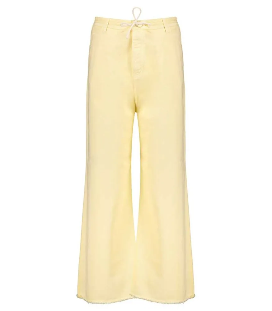 Jean Oversize En Denim Jaune Pâle De La Marque Happy Haus. Le Denim Très Fin Et Teinté D’Un Doux Jaune Pâle Dans Lequel Ce Modèle Est Conçu Lui Confère Un Aspect Quasi-Aérien.