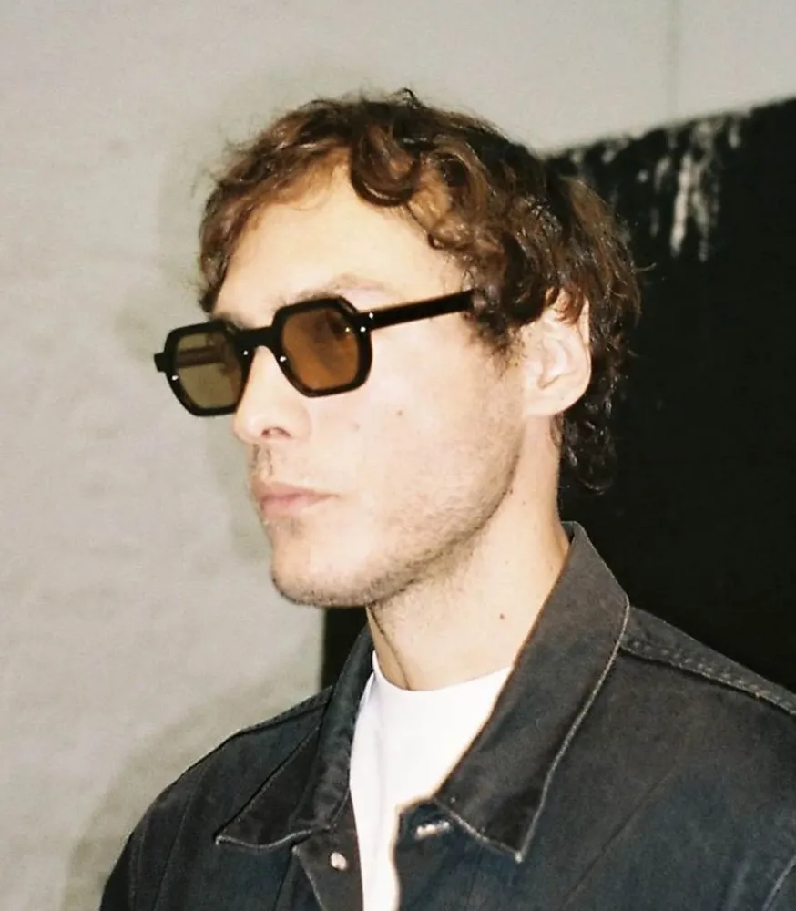 Lunettes De Soleil Darren Noir Signées Jimmy Fairly. Must-Have À La Forme Carrée Et Aux Bords Arrondis. Monture En Acétate Noir Sobre Et Élégante Et Verres Fumés Sépia. Convient Davantage Aux Visages Médiums, De Forme Triangle Ou Ovale.