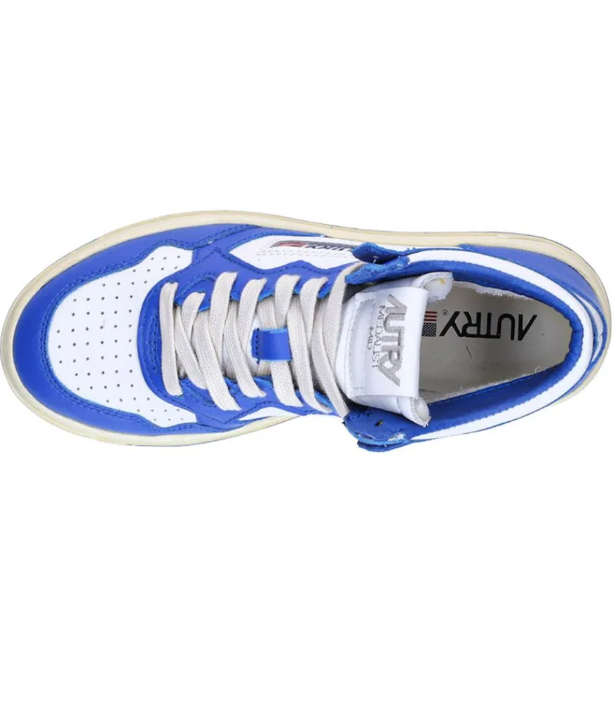 Une Paire De Baskets Montantes À Empiècements Contrastants Blanc Et Bleu De La Marque Autry. Autry Medalist Représente Un Modèle Inspiré Des Baskets Vintages Des Années Quatre-Vingt. La Tige En Cuir Bicolore, Mêlant Le Blanc Et Le Bleu, Apporte À Ce Design Une Originalité Inégalée.