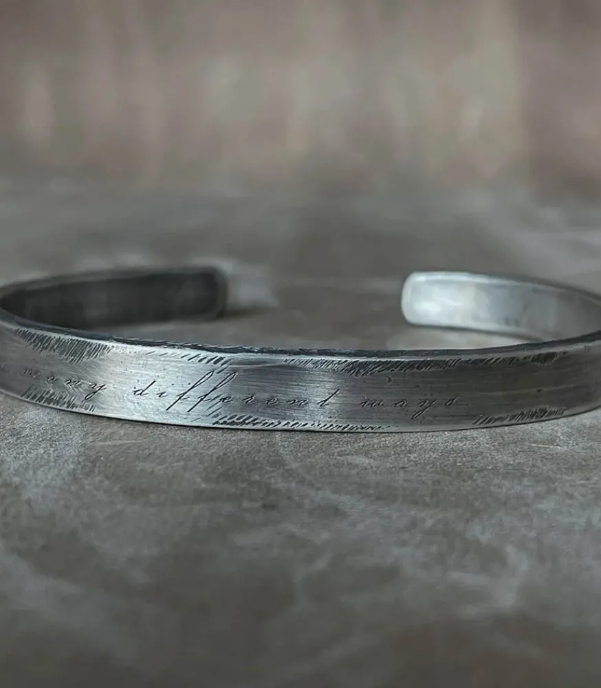 Bracelet Different Ways De La Marque Tó Garal, Un Jonc Ouvert Conçu En Argent 925 Qui Se Distingue Par Ses Détails Bruts Et Authentiques Et Son Inscription Gravée « I Am You In Many Different Ways »