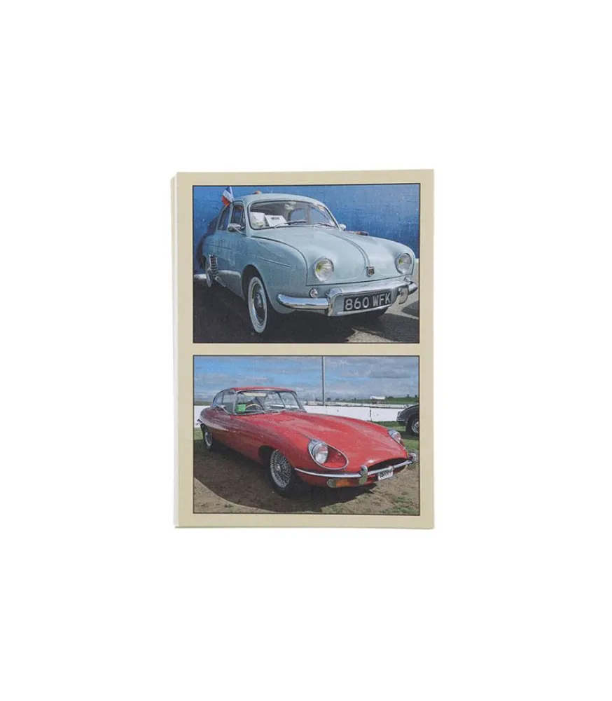 Petite Boîte En Carton Signée Marc Vidal, Contenant Des Cartes Présentant 48 Voitures De Légende Dans Les Années 50 À 70. Chaque Carte Présente Une Photographie De La Voiture Et Ses Caractéristiques.
