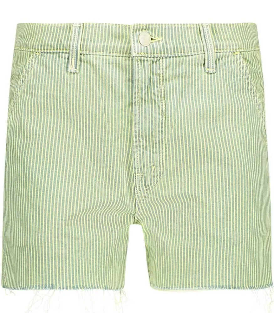 Mother Introduit Son Short Casual Qui S’Impose Comme Un Essentiel De Notre Été. Avec Son Imprimé À Rayures Fines Vertes Et Jaunes, Il Est Idéal Pour Apporter Une Touche De Couleur Et De Gaité À Votre Tenue Et Donne Instantanément Du Pep’S À Un Simple Tee-Shirt Et Des Baskets. Doté D’Une Taille Haute, Ce Short A Tout Pour Plaire.
