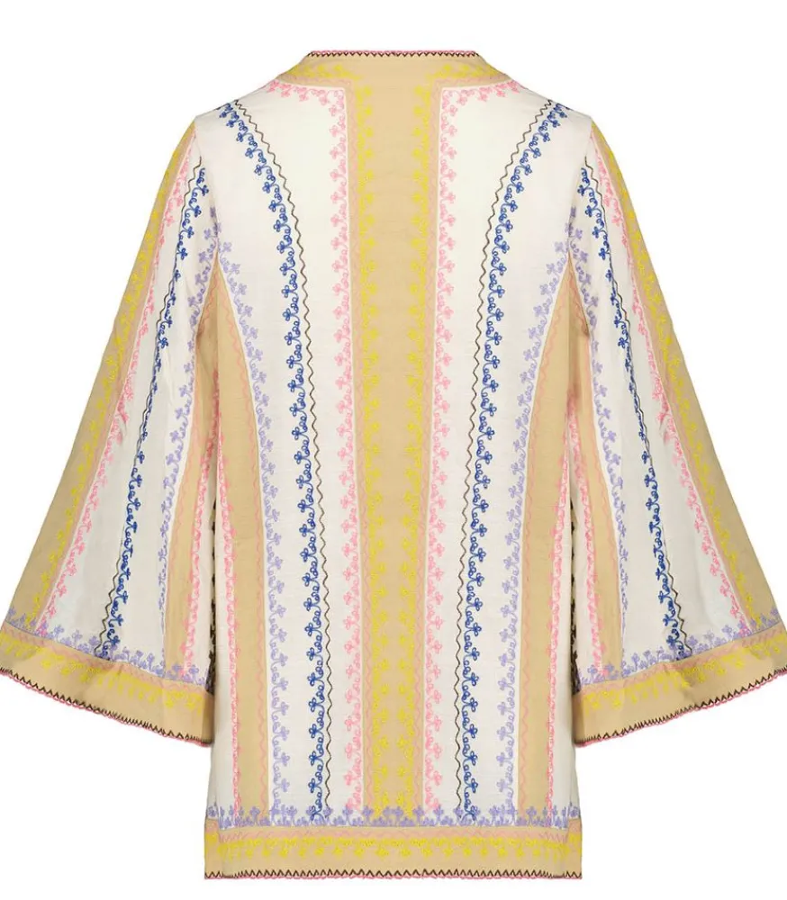 Top August Embroidered Signé Zimmermann. Craquez Pour Le Haut August Brodé En Motif Multiple. Un Chemisier À Manches 3/4 Doté D’Empiècements Contrastés.