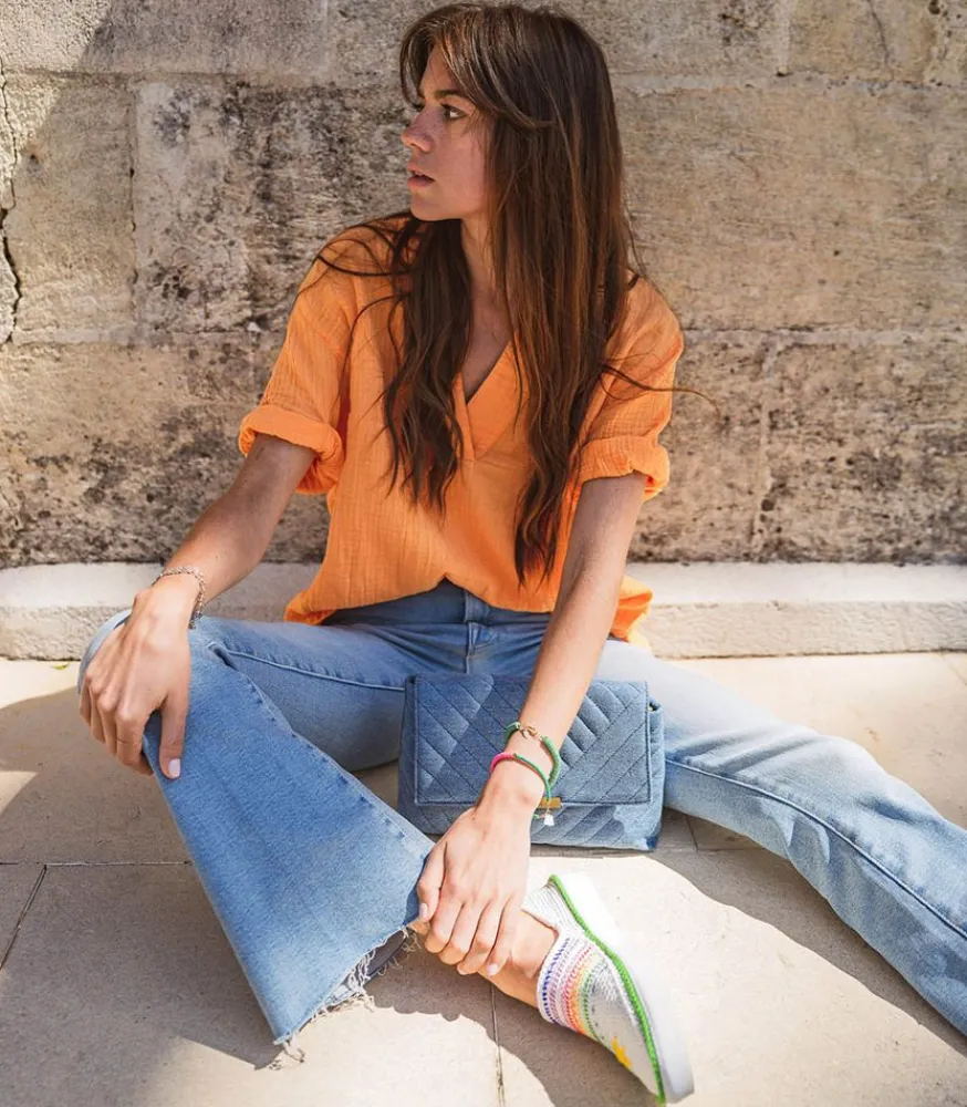 Top Avery Apricot Signé Xirena, Un Modèle Confenctionné Dans De La Gaze De Coton Double Face Lavée Au Doux Coloris Orangé. Un Top Au Toucher Doux Et Légèrement Froissé Que L’On Associe Simplement À Un Short En Jean Et À Une Paire De Sneakers.
