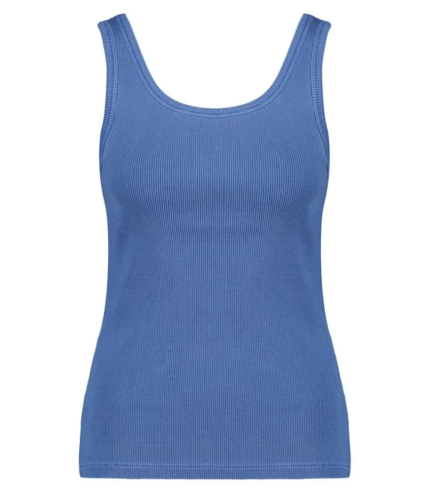 Top Tess Very Pery Signé Red Legend. Un Dédardeur Classique, En Coton Côtelé De Coloris Bleu. Parfait Pour Tous Les Jours, Avec Un Cardigan Ou Sous Un Pull. Coupe Droite.
