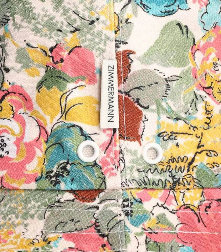 Bob Honey Peony Floral Signé Zimmermann, Un Chapeau Issu De La Collection Resort Swim 2023 Au Motif Floral Et Aux Bords Souples Et Effilochés. Il Apporte Un Brin De Fraîcheur À La Silhouette Grâce À Son Imprimé Et Ses Douces Couleurs.