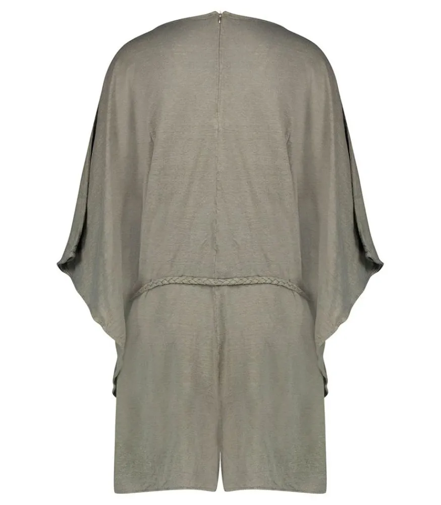 Combishort Col V Militaire De La Marque Majestic Filatures, À La Coupe Ample Et Carrée. On Marque La Silhouette Grâce Au Lien Tressé À La Taille Pour Donner De L’Allure. Un Joli Col En V Féminise Le Tout Et Des Coutures Sur Les Bords Donnent Un Côté Volanté.