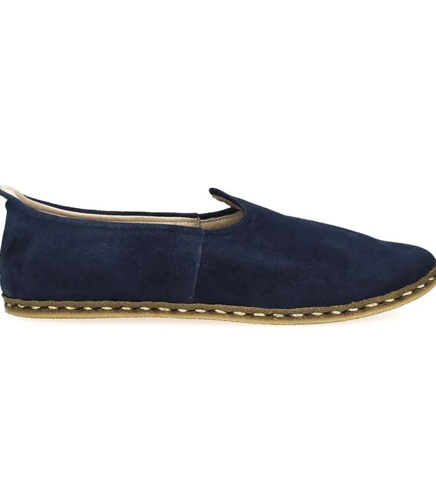 Mocassins Saanas Pour Homme En Cuir Suédé, Modèle Classique, Coloris Bleu Marine.
